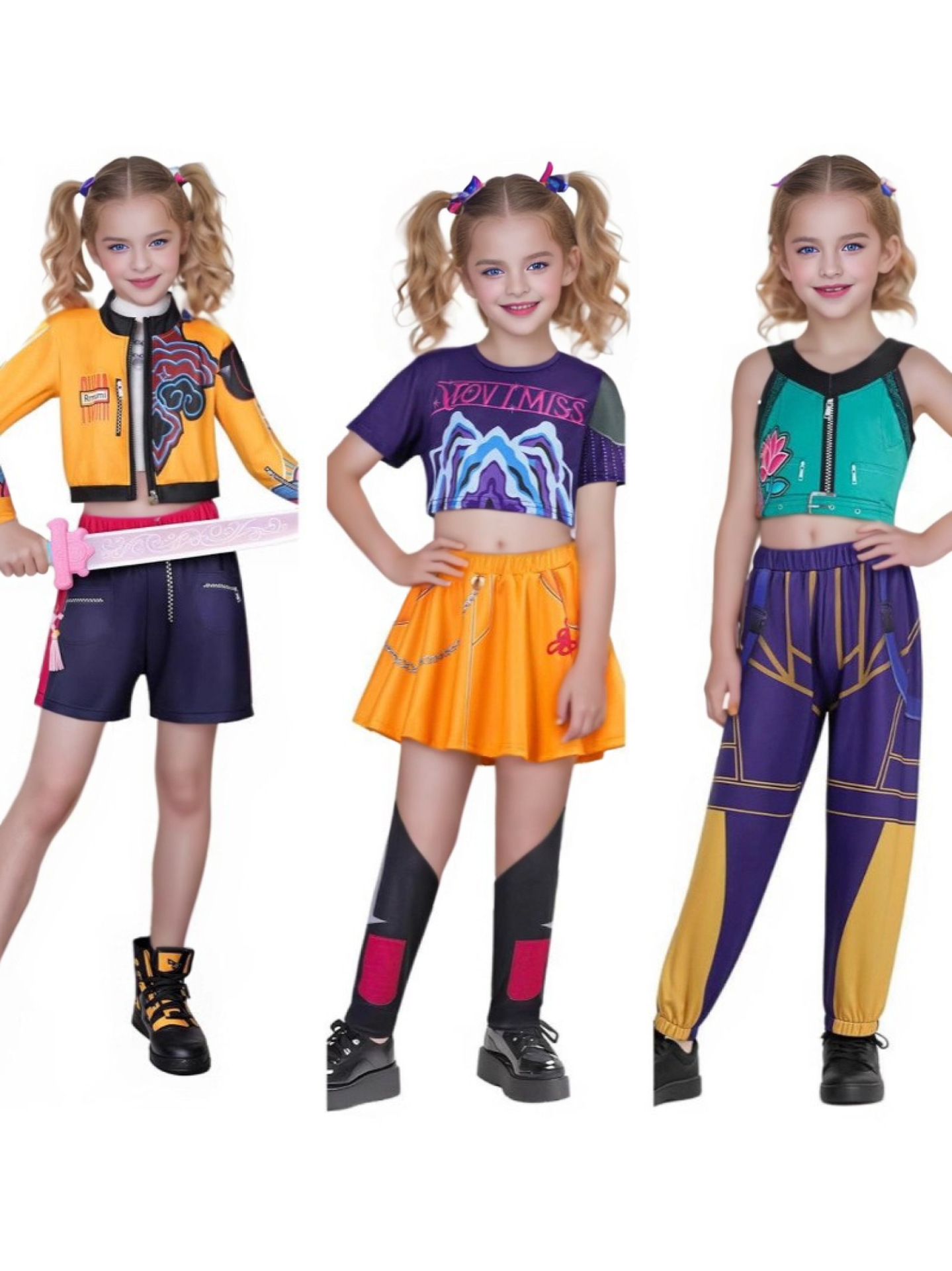 K-Pop Demon Hunters Rumi Cosplay Costume for Kids, Zoey & Mira K-POP Girl Group Role Play Outfit, Halloween Party Performance Dress